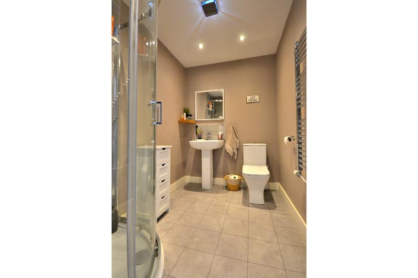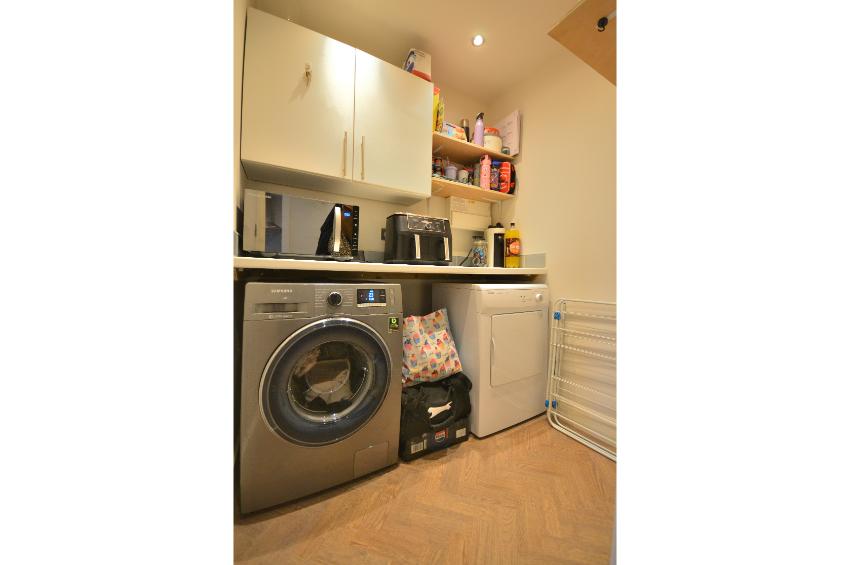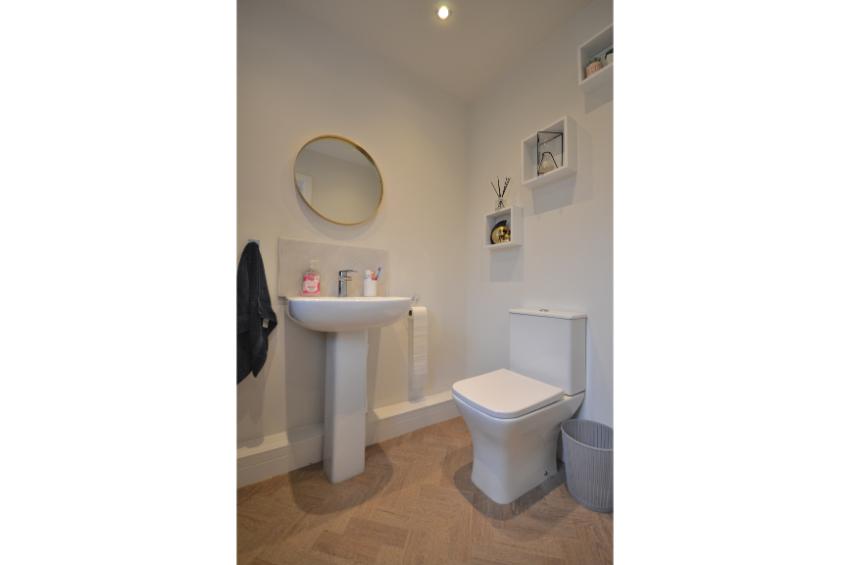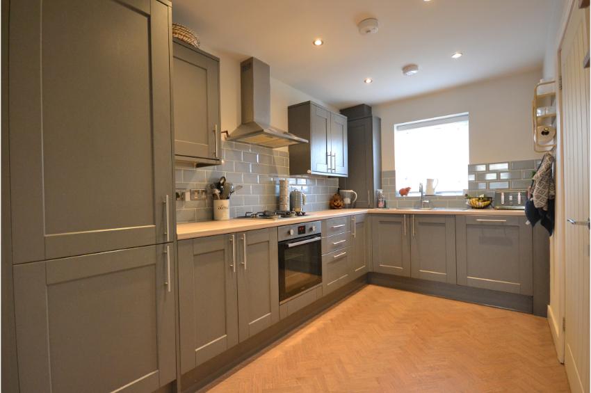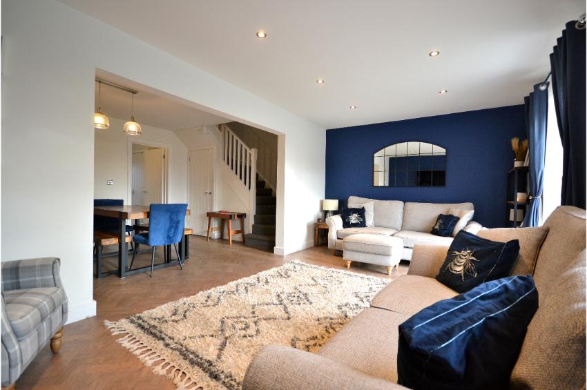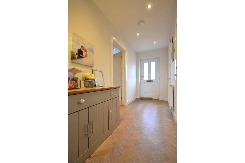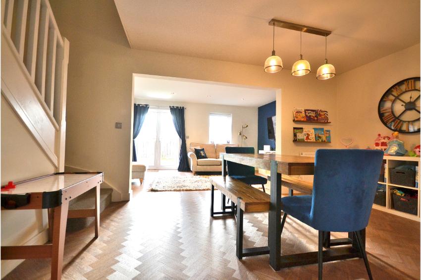 Upon entering, you are greeted by a welcoming open plan reception room that flows seamlessly into the heart of the home. The ground floor features stunning LVT flooring with a timeless parquet pattern in a natural oak finish, adding a touch of elegance to the living areas.  The layout includes a contemporary kitchen, a convenient utility room and a cloakroom, enhancing the practicality of everyday living. The house features a well-appointed bathroom and  three bedrooms. A master suite with the added luxury of an ensuite shower room as well as dressing area with fitted wardrobes. The remaining bedrooms are versatile and can easily accommodate family members, guests, or even serve as a home office.